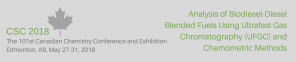 Biodiesel is added to diesel fuel in concentrations ranging from 2 to 35%, mostly for the purposes of reducing greenhouse gases. The resulting binary blended fuels (labeled B2-B35) have lowered hydrocarbon and carbon monoxide emissions compared to petrodiesel. Traditional analysis methods utilize gas chromatography (GC) with a long, polar column leading to separation times of thirty to sixty minutes. As a faster alternative, we propose using ultrafast GC (UFGC) to evaluate binary fuels with concentrations ranging from 1-20% with various biodiesel feedstocks (soybean, tallow, safflower, sunflower, camelina, palm, etc). A short mid-polarity column (MXT-50, 4m x 180 mm x 0.2 mm, Restek) was used to provide optimal separation of the saturated fatty acid methyl esters (FAMEs) in the biodiesel while still allowing for retention of the variety of components in the diesel. Several chemometric tools, including Principal Component Analysis (PCA) and Partial Least Squares (PLS), were used to provide group analysis of feedstock type and concentration.
