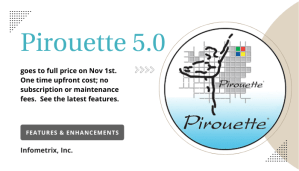 Cost of being outdated: It is important to stay up to date with software for security, compatibility, efficiency, and accessing enhancements and new features. Pirouette 5.0 was released over a year ago and our upgrade offer will end on October 31st. Our Release Note which is included in the demo download and through the link here, provides the latest features and enhancements. Download the demo for a review or contact us for questions, quote or comments at info@infometrix.com.