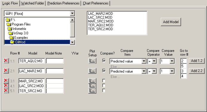Even complex decision trees are easy to set up with InStep. If your data requires that you create multiple models to fine tune your predictions, InStep is ready to put that effort into a single method. Turn on the Compare switch, then create the logic to handle each step of the decision process. Decisions for traversing the logic flow can be made on predicted values or any outlier diagnostic available for the algorithm.